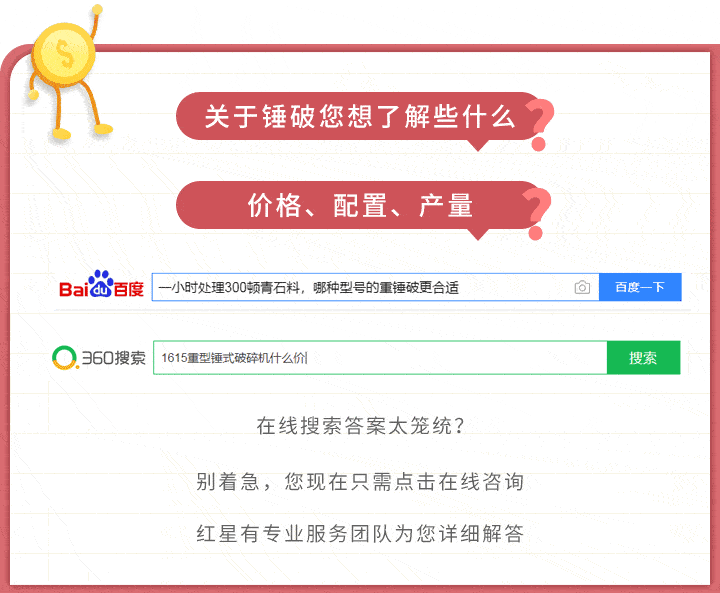 大家若是想具体了解1615重型锤式破碎机的价格,可选择在线咨询 的方式,我们的客服人员具备一定的专业设备知识,在为您进行准确报价的同时,还可提供一些合适的方案或者建议供您参考。